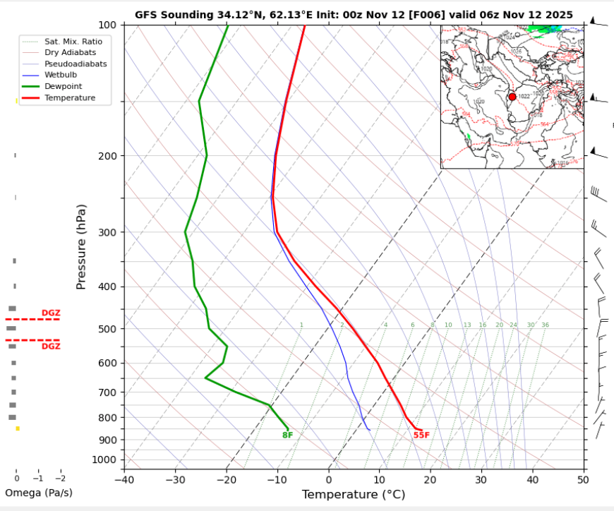 06 UTC RADIOSONDE REPORTS OF HERAT INTERNATIONAL AIRPORT Herat International Airport 06UTC Skew-T Diagram Last updated Nov 12, 2025