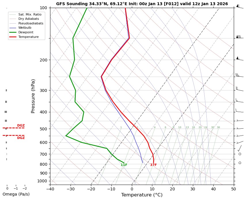 12 UTC RADIOSONDE REPORTS OF KABUL INTERNATIONAL AIRPORT Kabul international airport 12UTC Skew-t diagram Last updated Jan 13, 2026