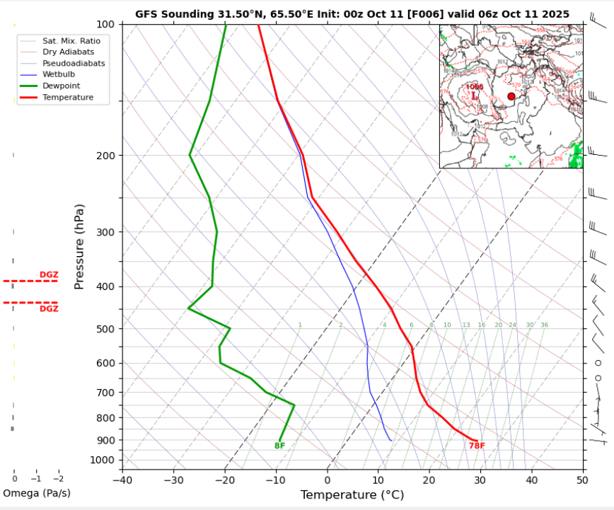06 UTC RADIOSONDE REPORTS OF KANDAHAR INTERNATIONAL AIRPORT Kandahar International Airport 06UTC Skew-T Diagram Last updated Oct 11, 2025