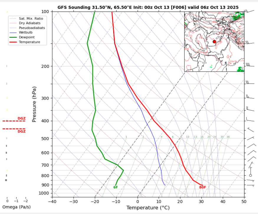 06 UTC RADIOSONDE REPORTS OF KANDAHAR INTERNATIONAL AIRPORT Kandahar International Airport 06UTC Skew-T Diagram Last updated Oct 13, 2025