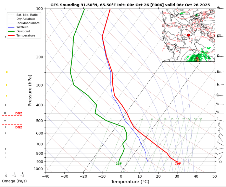 06 UTC RADIOSONDE REPORTS OF KANDAHAR INTERNATIONAL AIRPORT Kandahar International Airport 06UTC Skew-T Diagram Last updated Oct 26, 2025