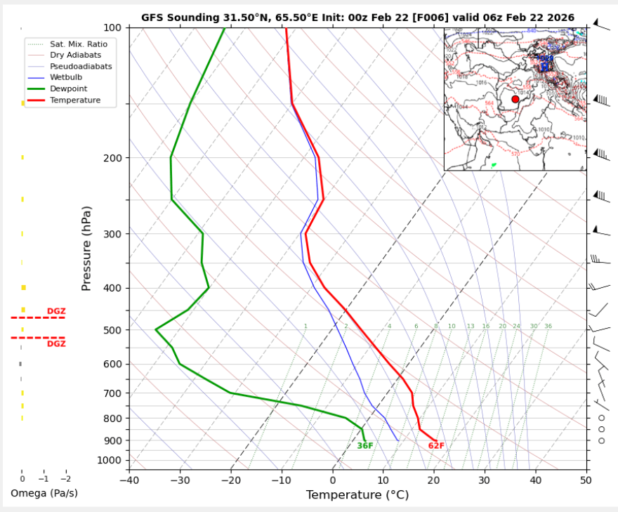 06 UTC RADIOSONDE REPORTS OF HERAT INTERNATIONAL AIRPORT06 UTC RADIOSONDE REPORTS OF KANDAHAR INTERNATIONAL AIRPORT Kandahar International Airport 06UTC Skew-T Diagram Last updated Feb 22, 2026