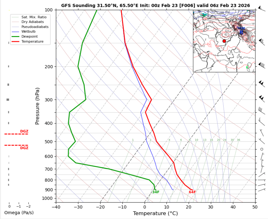 06 UTC RADIOSONDE REPORTS OF KANDAHAR INTERNATIONAL AIRPORT Kandahar International Airport 06UTC Skew-T Diagram Last updated Feb 23, 2026