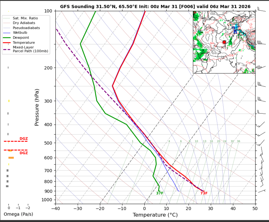 06 UTC RADIOSONDE REPORTS OF KANDAHAR INTERNATIONAL AIRPORT Kandahar International Airport 06UTC Skew-T Diagram Last updated Mar 31, 2026