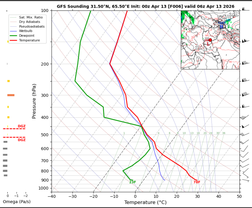 06 UTC RADIOSONDE REPORTS OF KANDAHAR INTERNATIONAL AIRPORT Kandahar International Airport 06UTC Skew-T Diagram Last updated Apr 13, 2026