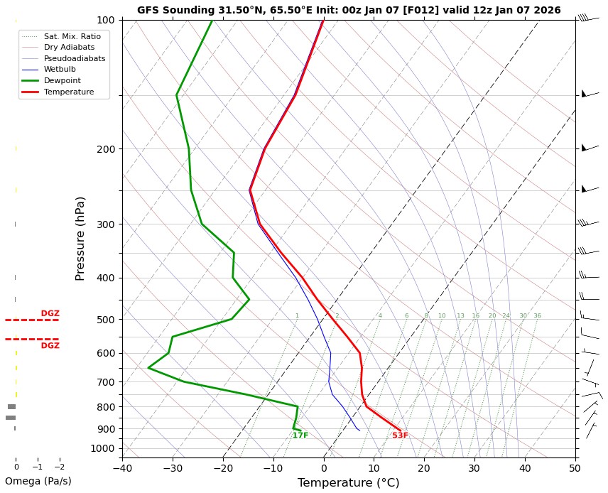 12 UTC RADIOSONDE REPORTS OF KANDAHAR INTERNATIONAL AIRPORT Kandahar international airport 12UTC Skew-t diagram Last updated Jan 7, 2026