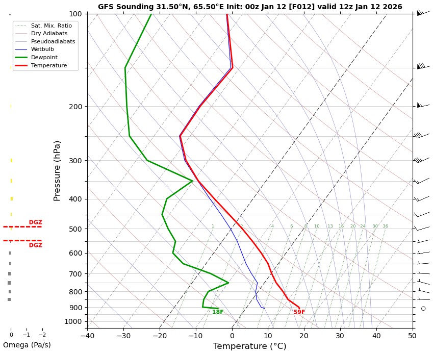 12 UTC RADIOSONDE REPORTS OF KANDAHAR INTERNATIONAL AIRPORT Kandahar international airport 12UTC Skew-t diagram Last updated Jan 12, 2026