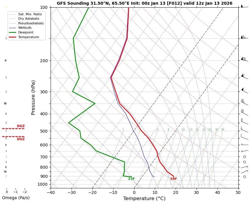 12 UTC RADIOSONDE REPORTS OF KANDAHAR INTERNATIONAL AIRPORT Kandahar international airport 12UTC Skew-t diagram Last updated Jan 13, 2026