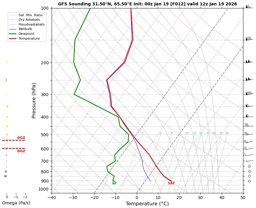 12 UTC RADIOSONDE REPORTS OF KANDAHAR INTERNATIONAL AIRPORT Kandahar international airport 12UTC Skew-t diagram Last updated Jan 19, 2026