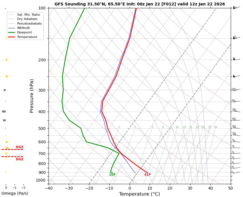 12 UTC RADIOSONDE REPORTS OF KANDAHAR INTERNATIONAL AIRPORT Kandahar international airport 12UTC Skew-t diagram Last updated Jan 22, 2026