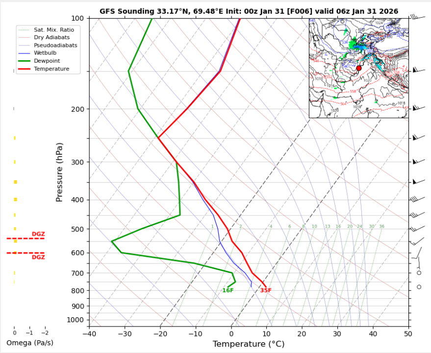 06 UTC RADIOSONDE REPORTS OF KHOST INTERNATIONAL AIRPORT Khost International Airport 06UTC Skew-T Diagram Last updated Jan 31, 2026
