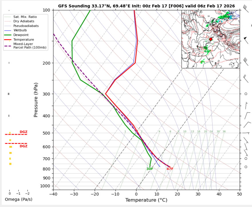 06 UTC RADIOSONDE REPORTS OF KHOST INTERNATIONAL AIRPORT Khost international Airport 06UTC Skew-T Diagram Last updated Feb 17, 2026