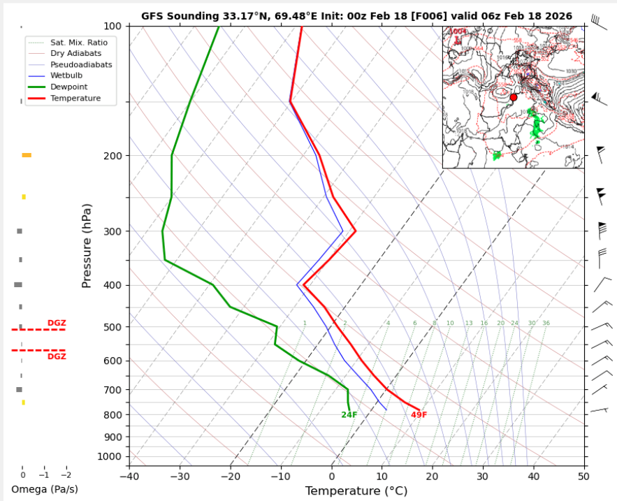 06 UTC RADIOSONDE REPORTS OF KHOST INTERNATIONAL AIRPORT Khost International Airport 06UTC Skew-T Diagram Last updated Feb 18, 2026