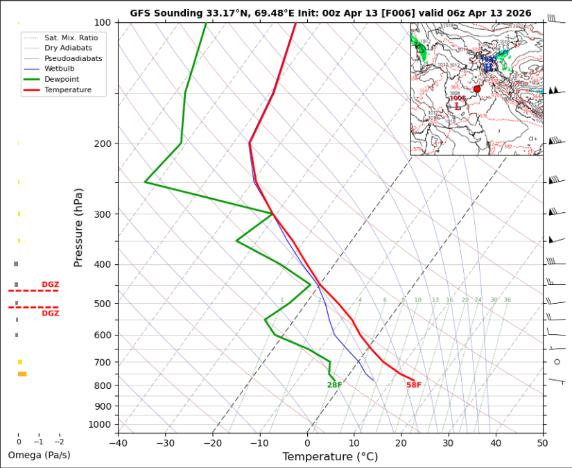 06 UTC RADIOSONDE REPORTS OF KHOST INTERNATIONAL AIRPORT Khost International Airport 06UTC Skew-T Diagram Last updated Apr 13, 2026