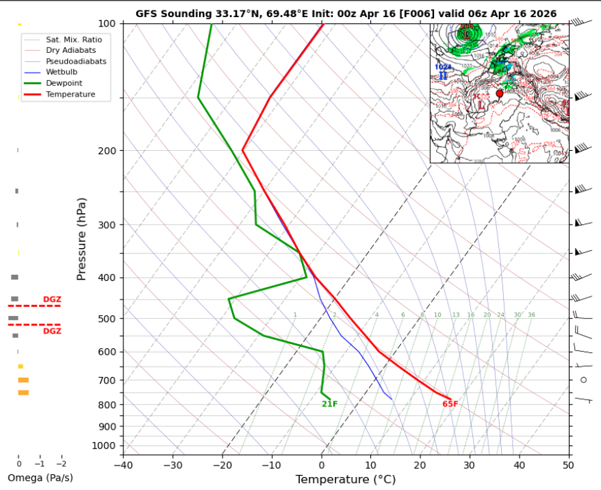 06 UTC RADIOSONDE REPORTS OF KHOST INTERNATIONAL AIRPORT Khost International Airport 06UTC Skew-T Diagram Last updated Apr 16, 2026