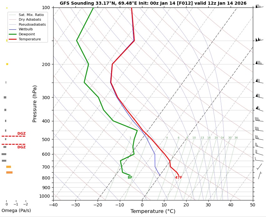 12 UTC RADIOSONDE REPORTS OF KHOST INTERNATIONAL AIRPORT Khost international airport 12UTC Skew-t diagram Last updated Jan 14, 2026
