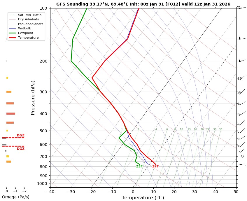 12 UTC RADIOSONDE REPORTS OF KHOST INTERNATIONAL AIRPORT Khost international airport 12UTC Skew-t diagram Last updated Jan 31, 2026