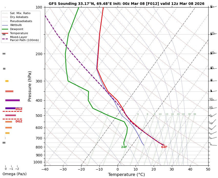 12 UTC RADIOSONDE REPORTS OF KHOST INTERNATIONAL AIRPORT Khost international airport 12UTC Skew-t diagram Last updated Mar 8, 2026