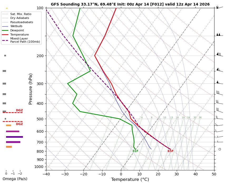 12 UTC RADIOSONDE REPORTS OF KHOST INTERNATIONAL AIRPORT Khost international airport 12UTC Skew-t diagram Last updated Apr 14, 2026