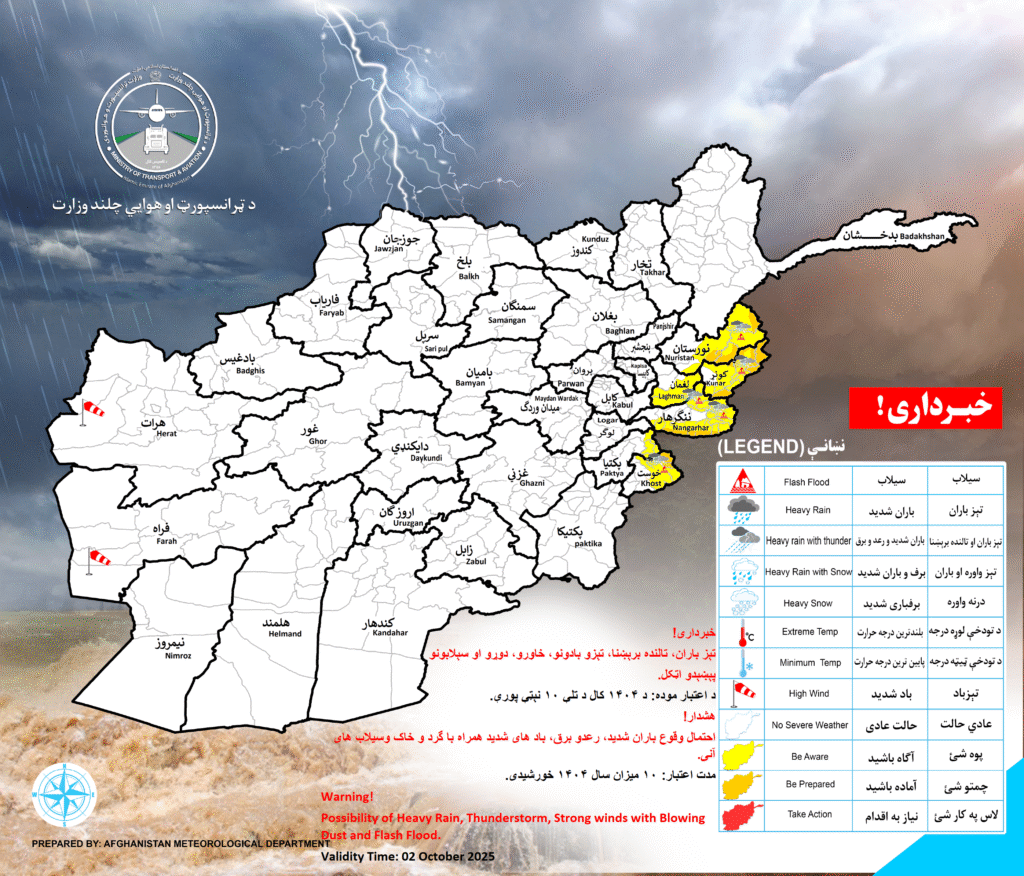 Possibility of Heavy Rain, Thunderstorm, Strong Winds with Blowing Dust and Flash Flood for the following provinces: