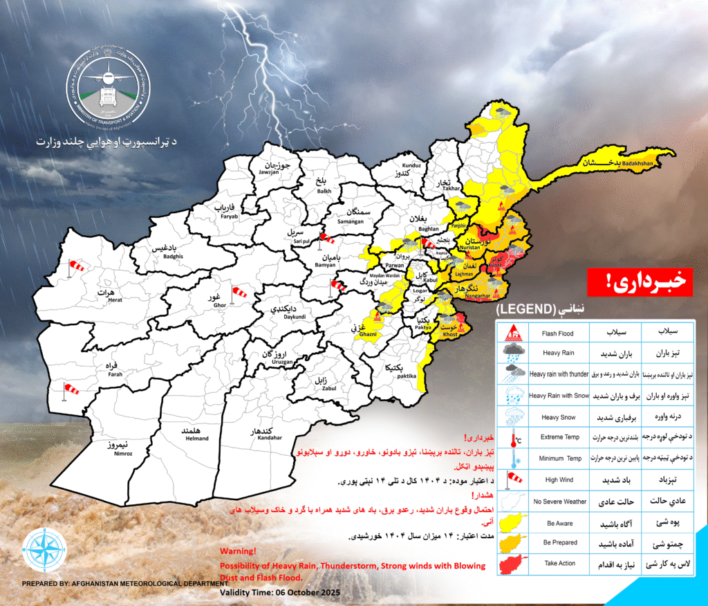 Possibility of Heavy Rain, Thunderstorm, Strong Winds with Blowing Dust and Flash Flood for the following provinces:
