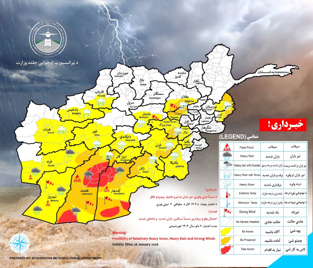 Warnings WARNING! Last updated Jan 25, 2026 Validity time: 26 January 2026 Possibility of Relatively Heavy Snow, Rain and Strong winds for the following provinces: