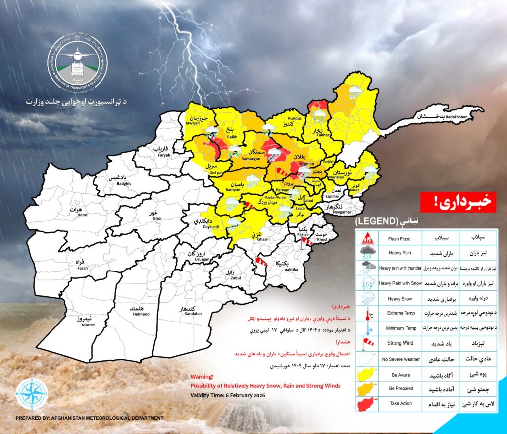 Warnings WARNING! Last updated Feb 5, 2026 Validity time: 06 February 2026 Possibility of Relatively Heavy Snow, Rain and Strong winds for the following provinces: